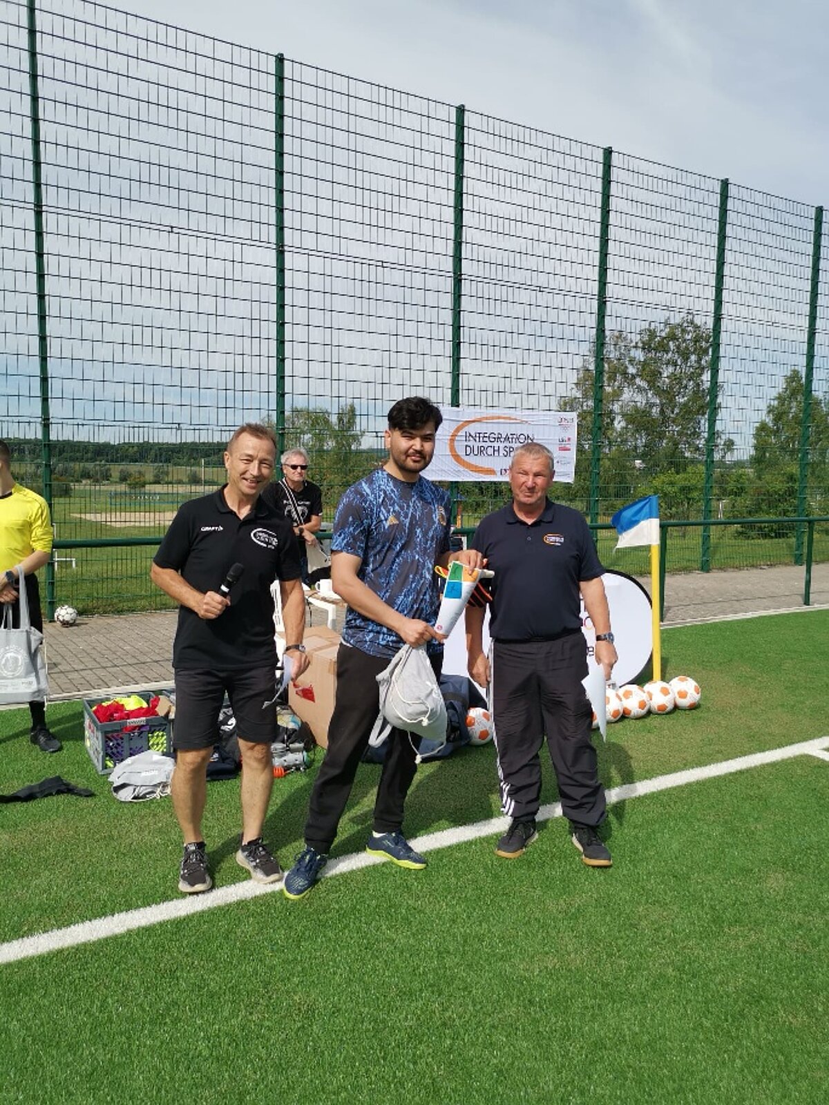Der Gesamtleiter der Veranstaltung Jörg Schünke vom Landessportbund Thüringen lobte die besonders gute Fairness, bedankte sich bei Turnierleiter Bernd Bock (TFV), dem Vorort-Organisator Witalij Welitschkin mit seinen fleißigen Helferinnen, Gastgeber SG Birkungen 07 und den souveränen Schiedsrichtern Luca Weber, Steve Neudeck und Gregor Mager vom KFA Eichsfeld-Unstrut Hainich.