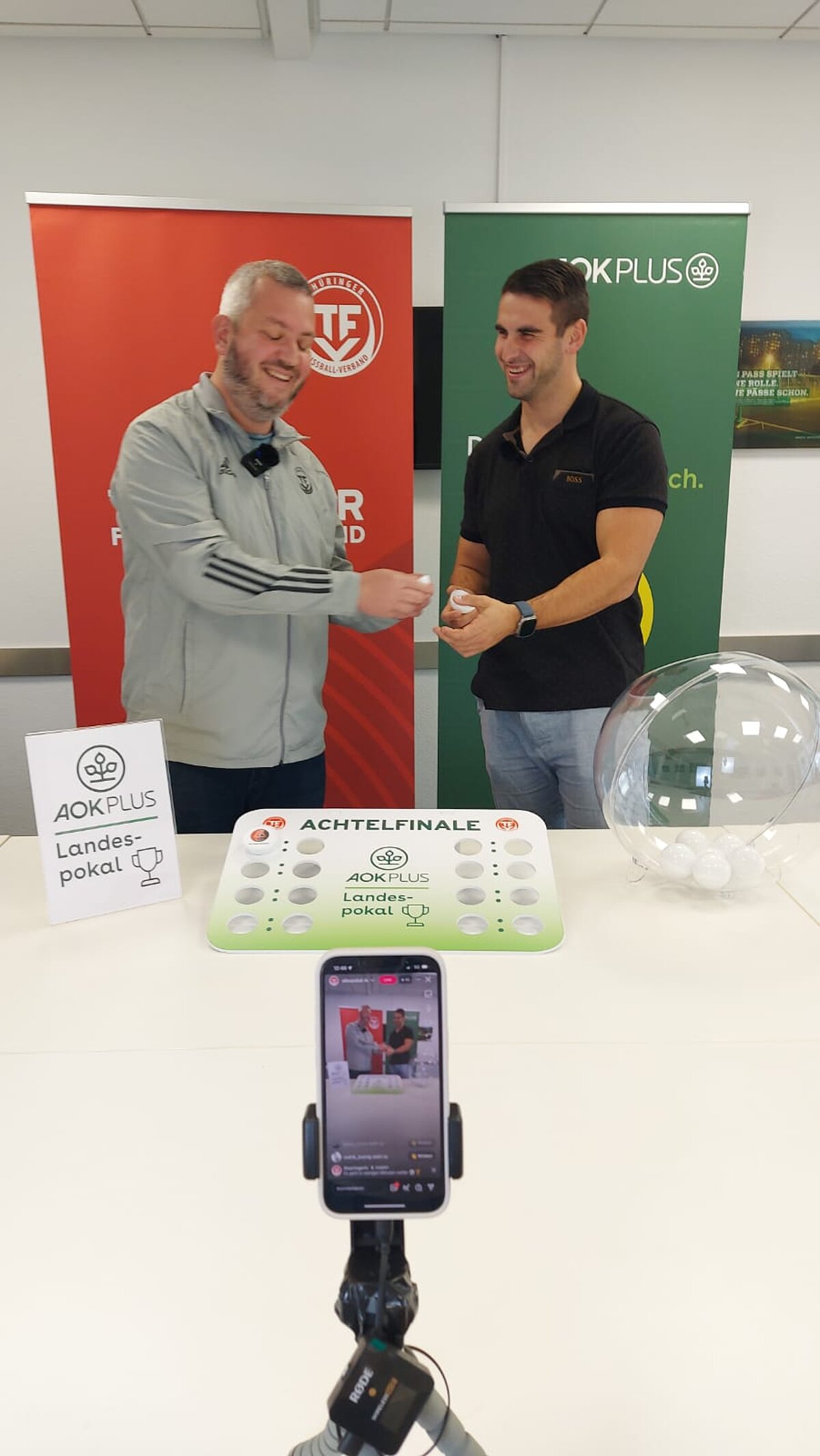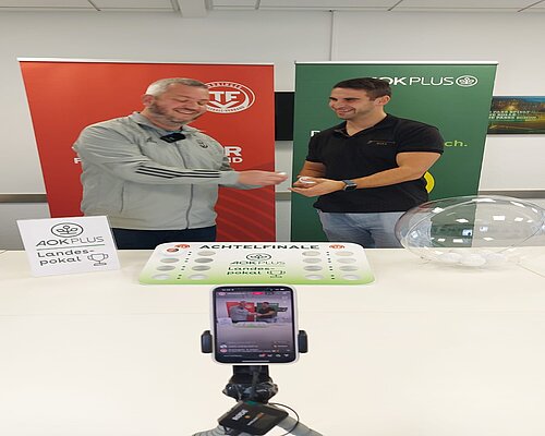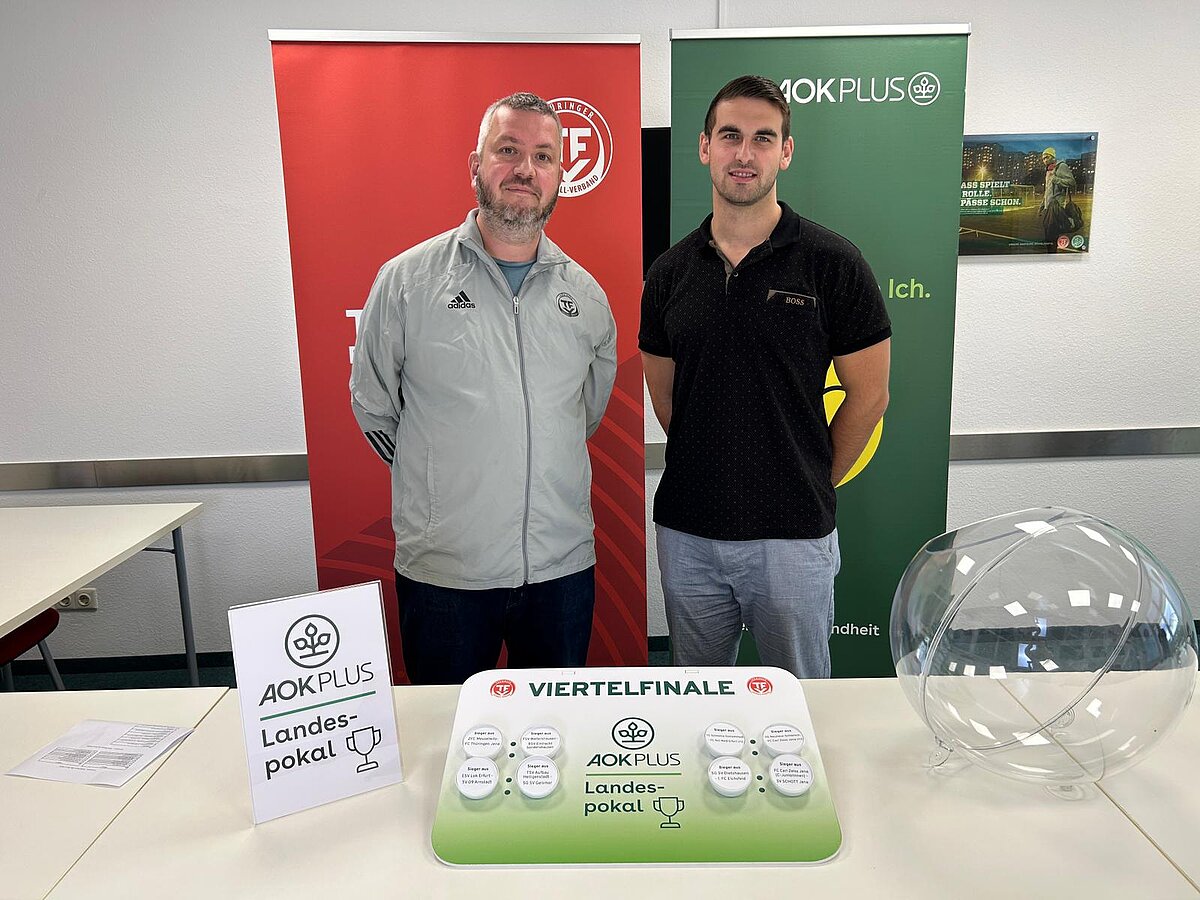 Florian Zabel (AOK PLUS) und Achim Kohls (Mitglied Jugendausschuss, Staffelleiter Landesspielbetrieb B-Junioren) hatten am vergangenen Freitag (24.10.2025) alle Hände voll zu tun. Gemeinsam losten die beiden die bevorstehenden Spielrunden des AOK PLUS Landespokals der Junioren in direkt vier Altersklassen aus.