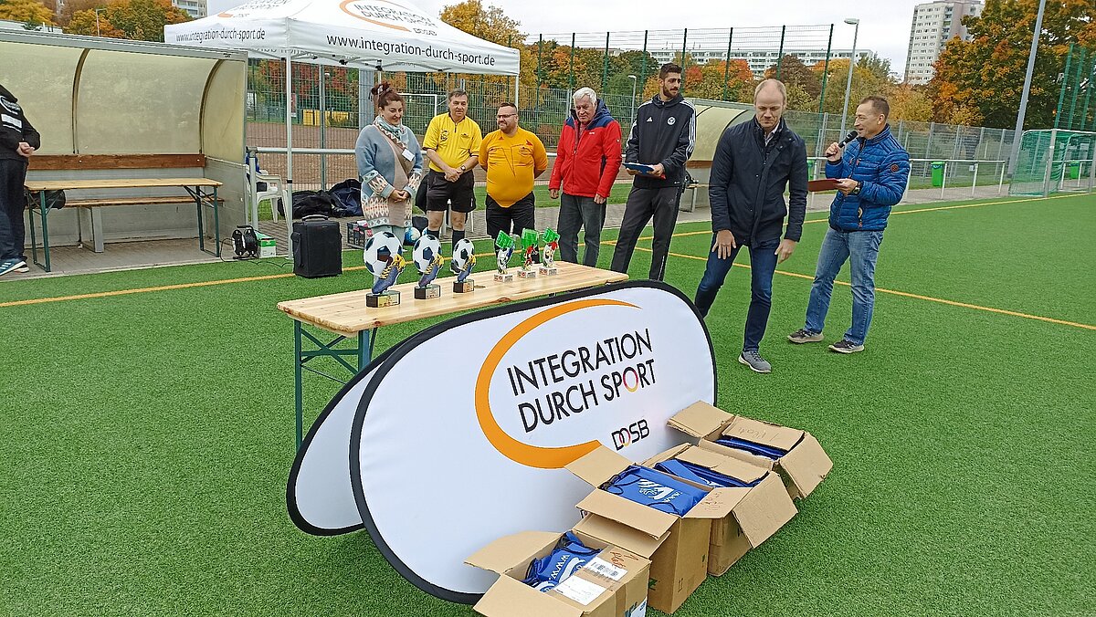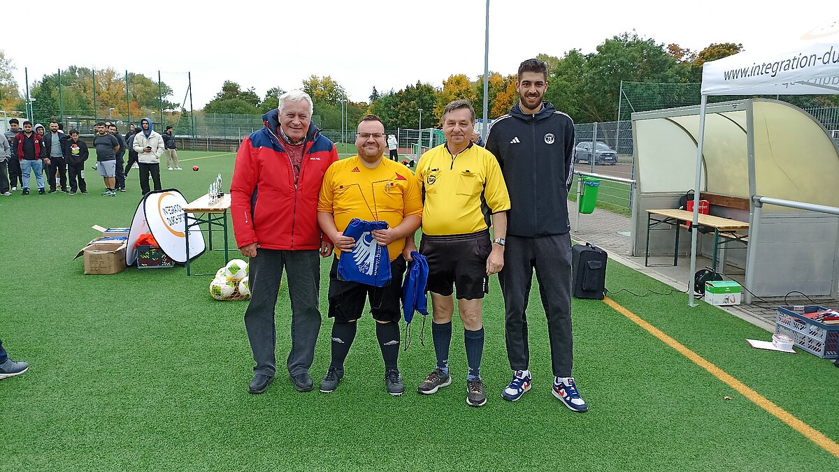 Gesamtleiter Jörg Schünke vom Landessportbund Thüringen, konnte zur Eröffnung auf dem Kunstrasenplatz "Am Nordpark" in Erfurt Ehrenmitglied Peter Brenn und Tarik El-Hallag vom Thüringer Fußball-Verband, sowie Vertreter vom Bundesamt für Migration und Flüchtlinge recht herzlich begrüßen. Nach der Eröffnung begannen die Vorrundenspiele in zwei Staffeln (Staffel A mit 4 und Staffel B mit 5 Mannschaften).