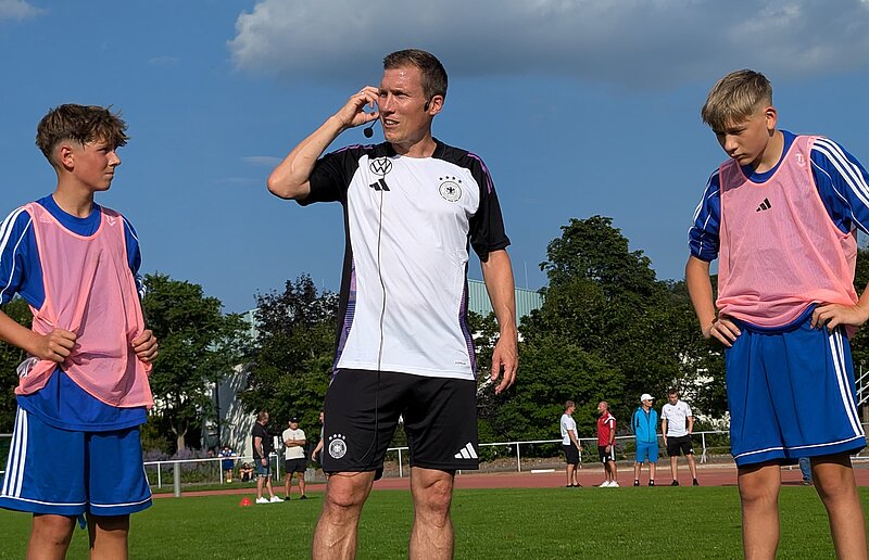 Am 10. Oktober von 15:00 Uhr bis 16:30 Uhr findet im Ernst-Abbe-Sportfeld in Jena eine Kurzschulung zur Trainingsphilosophie Deutschland statt. Moderiert wird die Trainingseinheit voller kleiner Spielformen von Lennart Claussen, dem Leiter für sportfachliche Inhalte beim DFB, Michael Urbanski, Cheftrainer der U23-Frauen-Nationalmannschaft und Heiko Nowak, dem DFB-Stützpunktkoordinator in Thüringen.