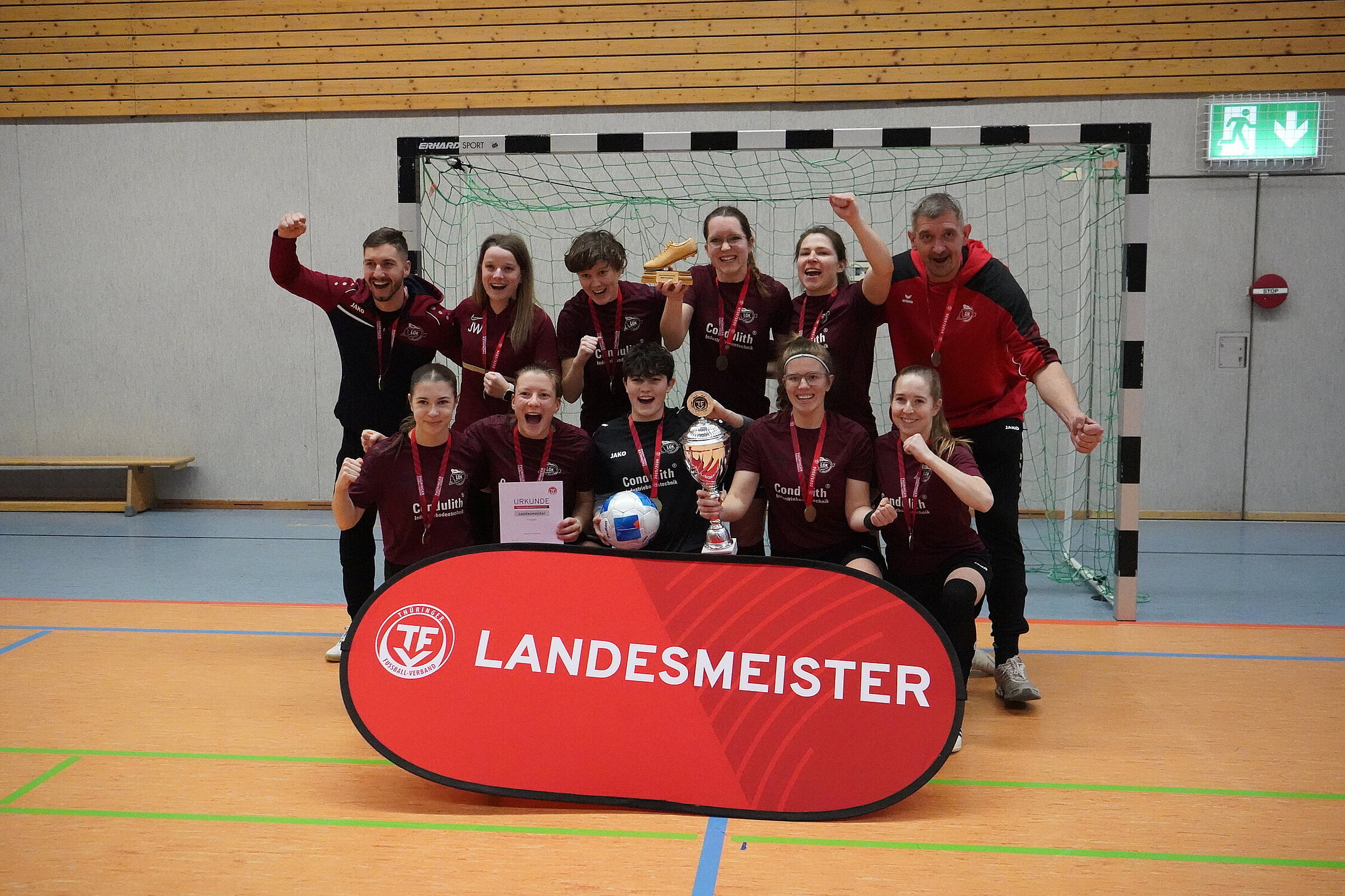 Der ESV Lok Meiningen hat bei den Hallenlandesmeisterschaften der Frauen in Tiefenort den Titel gewonnen. Die Meiningerinnen kamen mit drei Zählern Vorsprung vor Ruhla und dem 1. FFV Erfurt ins Ziel. Im letzten Turnierspiel hätten die Verfolgerinnen des EFC Ruhla den späteren Landesmeisterinnen den Titel nochmal streitig machen können. Mit dem torlosen Remis brachte Meiningen den Vorsprung aber ins Ziel und feierte die Landesmeisterschaft.