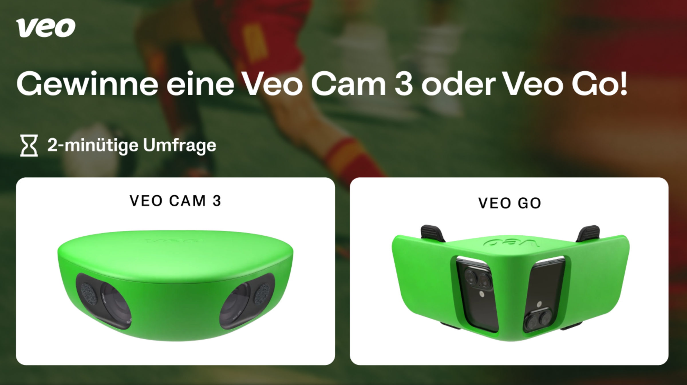 Unser Partner Veo führt derzeit eine kurze Umfrage durch, um sich ein besseres Bild davon zu machen, wie Trainer, Teams und Organisationen Videos einsetzen – und wie Veo sich in Zukunft verbessern kann. Mit deinen Antworten kannst du die Zukunft von Veo mitgestalten und zu besseren Funktionen und Updates für die Sport-Community beitragen.