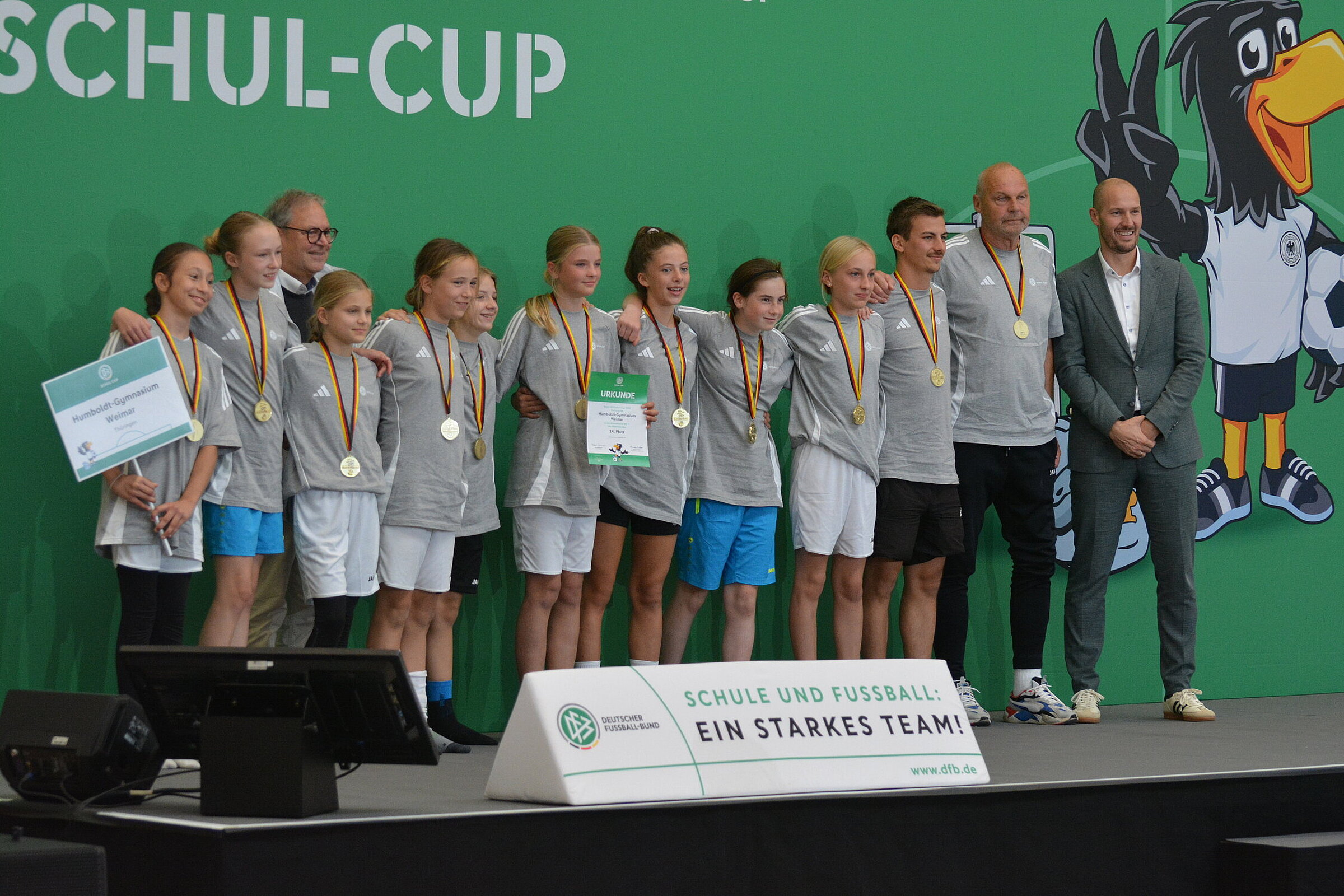 Am Dienstagmittag (23. September) läutete das Bundesfinale seine Halbzeit ein. Da fand die Finalrunde der Mädchen statt. Am Ende jubelten die Mädels der Hessischen Carl-von-Weinberg-Schule, die sich in einem packenden Finale 2:1 gegen das Team aus Nordrein-Westfalen durchsetzen.