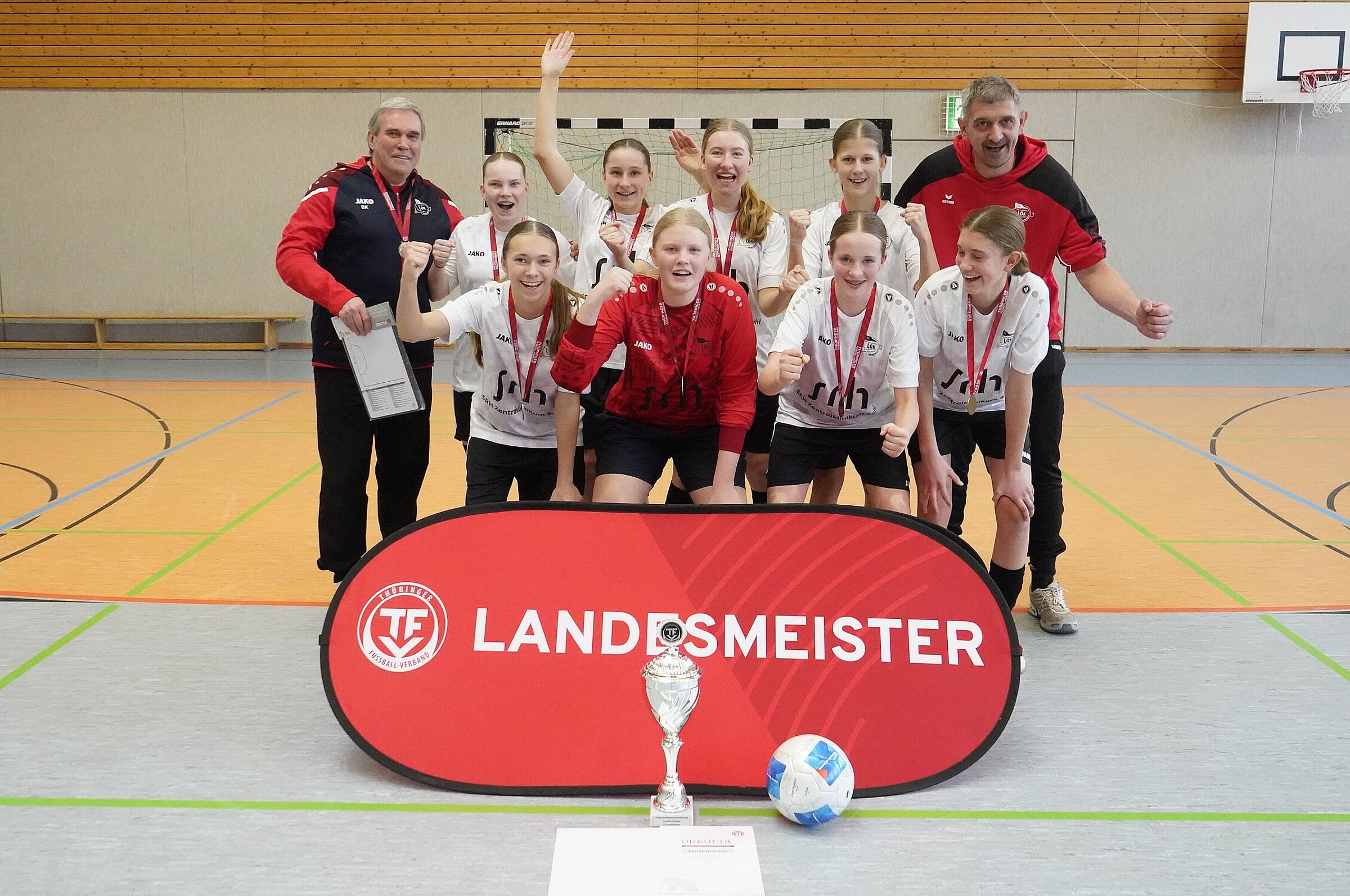 Der ESV Lok Meiningen hat bei den Hallenlandesmeisterschaften der C-Juniorinnen den Titel gewonnen. Beim letzten Turnierspiel zwischen den ESV-Mädels und Marbach ging es um alles. Mit einem 2:0-Sieg in diesem Match setzten sich die Meiningerinnen an die Spitze und angelten sich den Titel.