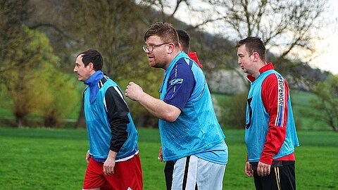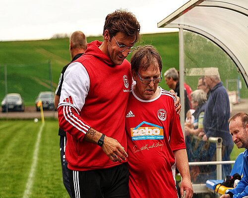 Nach der Einheit und einem gemeinsamen Mittagessen stand schließlich das Spiel auf dem Plan. Dass die Handicap‑Auswahl gegen das Männerteam der SG Wandersleben II letztlich deutlich den Kürzeren zog, stand beim Vergleich freilich nicht im Mittelpunkt. Die positiven Erkenntnisse, die das Trainerteam sammeln konnte, überwogen deutlich. So zeigte sich die Mannschaft aktiv, spielte sich Torchancen heraus und als eine dieser Möglichkeiten zum eigenen Treffer genutzt wurde, war der Jubel bei Spielern und Coaches natürlich groß. Unter dem Strich blieb ein absolut positiver Eindruck, der bei allen Lust auf mehr machte.