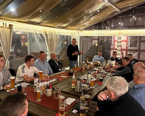 Am Freitag der vergangenen Woche tagte der VSA erneut im Hotel „Mühlenhof Bosse“ in Dachwig. Schwerpunkt dieser Beratung war die Vorbereitung der in der Winterpause stattfindenden Halbzeittagungen der Schiedsrichter und Beobachter sowie die Auswahl der Landessieger der Aktion „Danke Schiri. 2025/26“. Erstmalig nahm auch der neue Vizepräsident des Thüringer Fußball-Verbandes e.V., Ulrich Hofmann, an der Beratung teil. Für die Mitglieder des Schiedsrichterausschusses ist er aufgrund seiner früheren Tätigkeit im Haupt- und Ehrenamt des Verbandes kein Unbekannter, sodass sich sofort ein konstruktiver Austausch entwickelte.