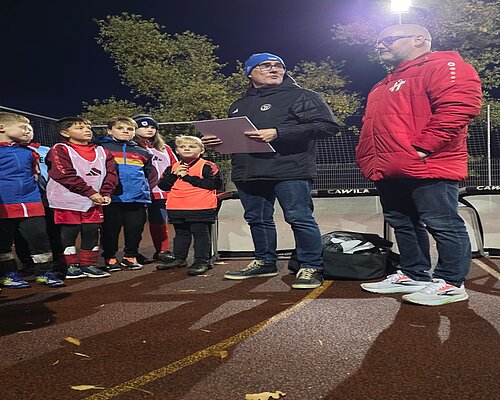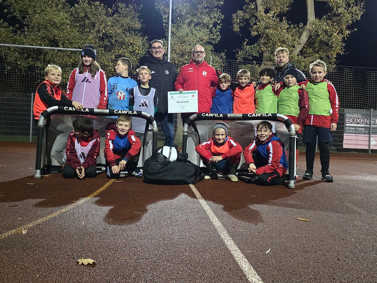 Über die Mitbringsel freuten sich vor allem auch die jungen Breitunger Fußballer, die gespannt die Auszeichnung ihres Vorsitzenden verfolgten. Kicken war für die E-Junioren natürlich auch auf der Tagesordnung. Sie absolvierten zuvor eine Einheit mit dem DFB-Mobil.