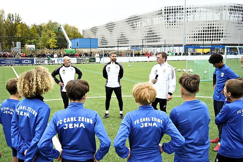 Jena war am 10.10.2025 Schauplatz einer spannenden Trainerfortbildung. Mit 164 Anmeldungen im Vorfeld zeugte die Veranstaltung von großem Interesse in der Trainer-Community. Auf dem Ernst-Abbe-Sportplatz versammelten sich die Teilnehmer - ob mit oder ohne Lizenz - um von führenden Experten des Deutschen Fußball-Bundes (DFB) zu lernen und sich weiterzubilden.
