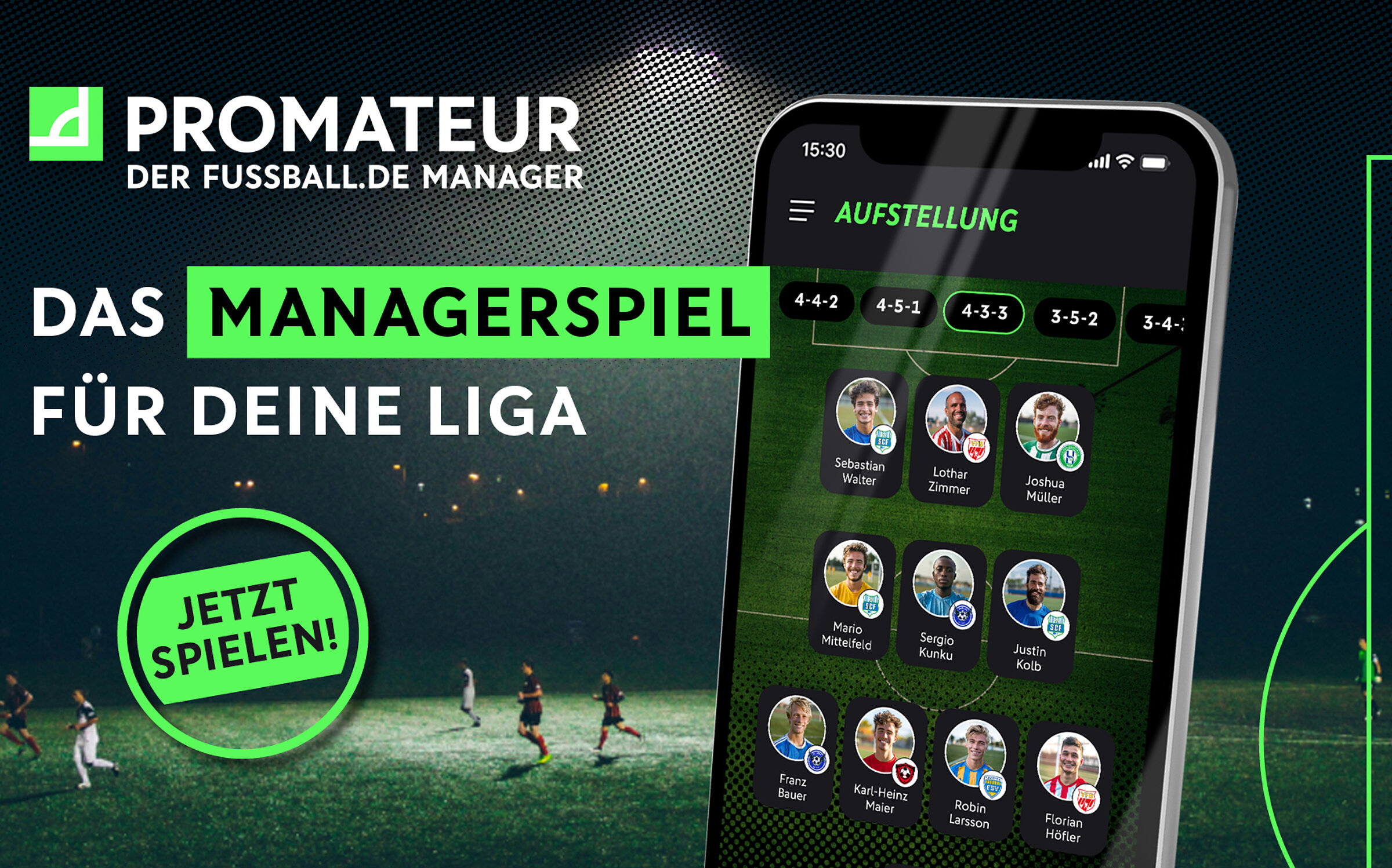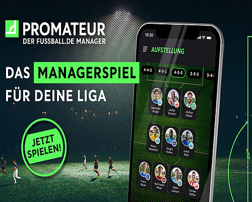 PROMATEUR ist das erste offizielle Managerspiel für den Amateurfußball powered by FUSSBALL.DE! Tauche in die Welt des Amateurfußballs ein und manage dein eigenes Team aus echten Amateurspieler*innen. PROMATEUR verbindet reale Spiele und gelebte Fußballkultur im Amateurfußball mit Gamification und digitaler Interaktion. Nach erfolgreicher Testphase in Nordrhein-Westfalen ist die App ab sofort bundesweit verfügbar.