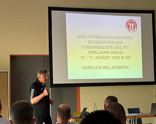 Als letzter, der Vorbereitungslehrgänge auf das Spieljahr 2025/26 fand am vergangenen Wochenende (16. bis 17. August) der Qualifizierungslehrgang der Schiedsrichter-Beobachter der Landesliste in der Landessportschule Bad Blankenburg statt. Eine Beobachterin und 34 Beobachter folgten der Einladung des Verbandsschiedsrichterausschusses. Darunter waren die Verantwortlichen für das Beobachtungswesen aus den Schiedsrichterausschüssen der neun Fußballkreise.