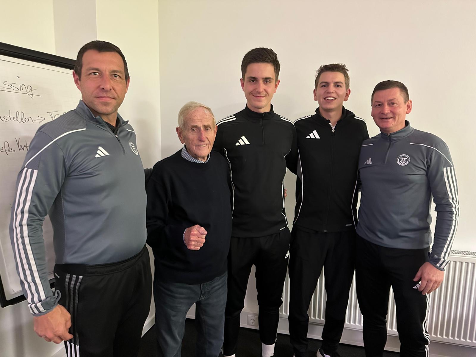 Aber auch die thüringer Expertise wurde gerne von den sächsischen Kollegen in Anspruch genommen: So war das Mitglied unseres Schiedsrichterlehrstabes und diplomierter Fitnesstrainer Patrick Hofmann für die Sport- und Sprinteinheiten verantwortlich. Und als "Stargast" begeisterte der 86-jährige Adolf Prokop mit einem 80-minütigen Impulsreferat über seine in der DDR beispiellose Schiedsrichterkarriere. Adolf Prokop war bei zwei Weltmeisterschaften (1978 Argentinien, 1982 Spanien), den Olympischen Spielen 1976 in Montreal und 2 Europameisterschaften (1980 Italien, 1984 Frankreich) dabei. Außerdem hat er jeweils drei Europapokalfinals und FDGB–Pokal-Endspiele geleitet. Nicht verwunderlich, dass viele der Talente den Ausführungen der Schiedsrichterlegende mit Staunen verfolgten.