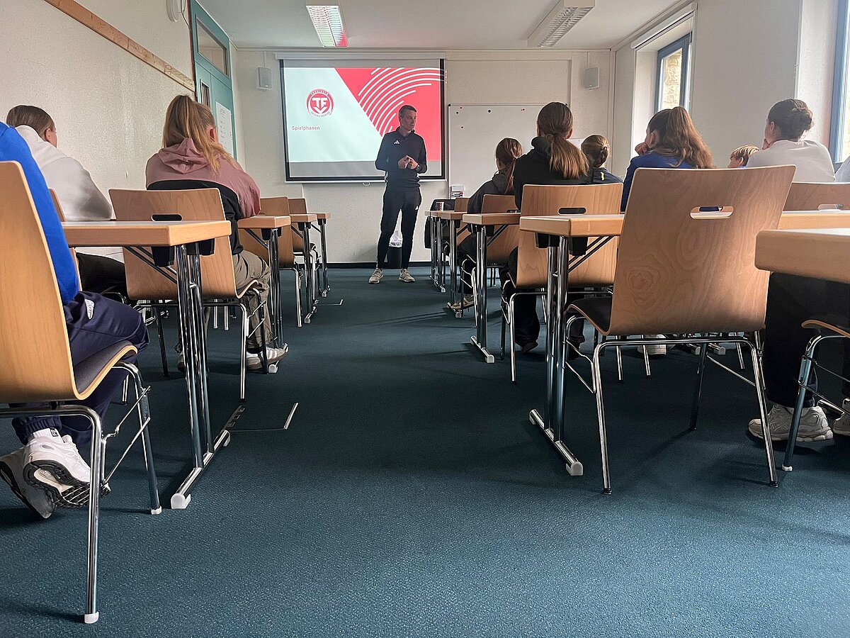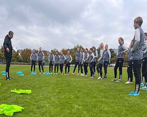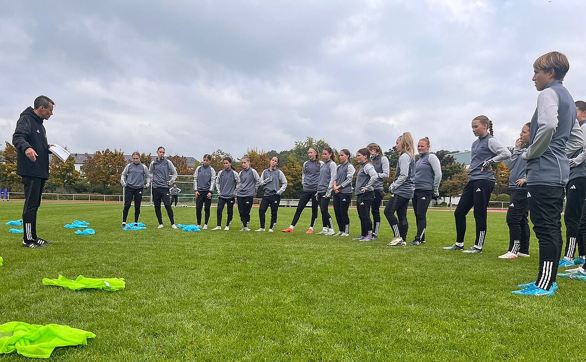 Am 01. Oktober kamen die Spielerinnen der TFV U16-Juniorinnen zum Tageslehrgang an der Landessportschule in Bad Blankenburg zusammen. Mit Blick auf das bevorstehende NOFV-Regionalturnier (16.10.-19.10.2025, Lindow) stand neben inhaltlichen Schwerpunkten fußballerischer Natur auch Teambuilding auf der vollen Tagesordnung. Für die Spielerinnen galt es zwei Platzeinheiten, Videoanalyse und Gruppenarbeiten zu absolvieren. Landestrainer Marc Reinhardt zeigte sich zufrieden mit dem Lehrgang und sagte: „Alle Spielerinnen haben konzentriert und mit hoher Intensität trainiert. Der Tageslehrgang war ein voller Erfolg und hat uns als Team inhaltlich und zwischenmenschlich viel gebracht.“