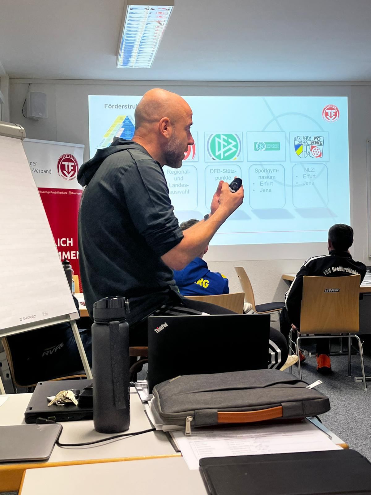 Ein besonderes Merkmal des Lehrgangs war der aktive Austausch unter den Teilnehmern. In Partner- und Gruppenarbeiten wurden Trainingsformen entwickelt, präsentiert und kritisch reflektiert. Das Feedback in den Arbeitsphasen trug maßgeblich zur Qualität bei und förderte die Vernetzung der Trainerinnen und Trainer. Ein weiterer Schwerpunkt war die Talentförderung, die durch Christian Kucharz, Landesauswahltrainer, kurzweilig und dargestellt wurde. Kucharz machte deutlich, wie wichtig eine strukturierte Förderung talentierter Spielerinnen und Spieler für die langfristige Entwicklung des Fußballs in Thüringen ist.