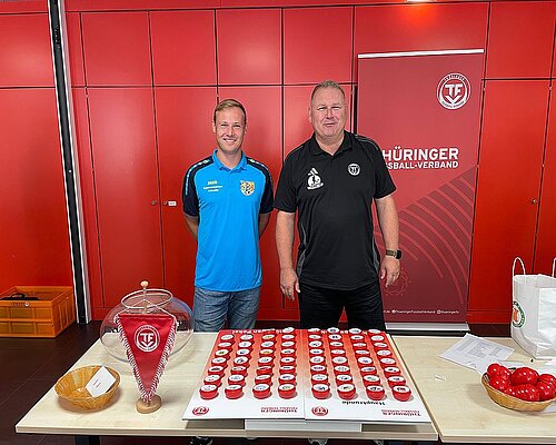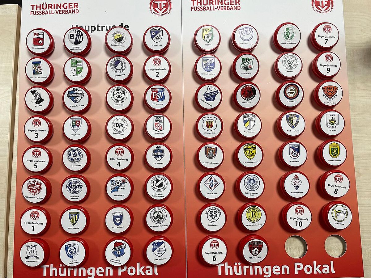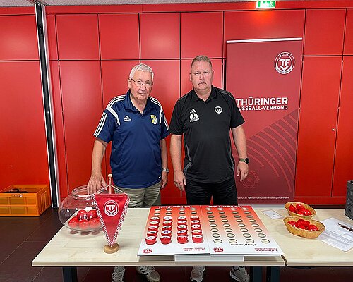 Am vergangenen Samstag (05. Juli) wurden die beiden ersten Runden des Thüringen Pokals 25/26 ausgelost. Im Rahmen der jährlichen Tagung des TFV-Spielausschusses mit den Kreis-Obleuten haben Joachim Geßner (Mitglied Spielausschuss KFA Jena-Saale-Orla) und Thilo Haucke (Mitglied Spielausschuss KFA Nordthüringen) ihr Händchen an den Kugeln erprobt und die Quali-Runde sowie die erste Hauptrunde gezogen. Diese Paarungen wurden ausgelost: