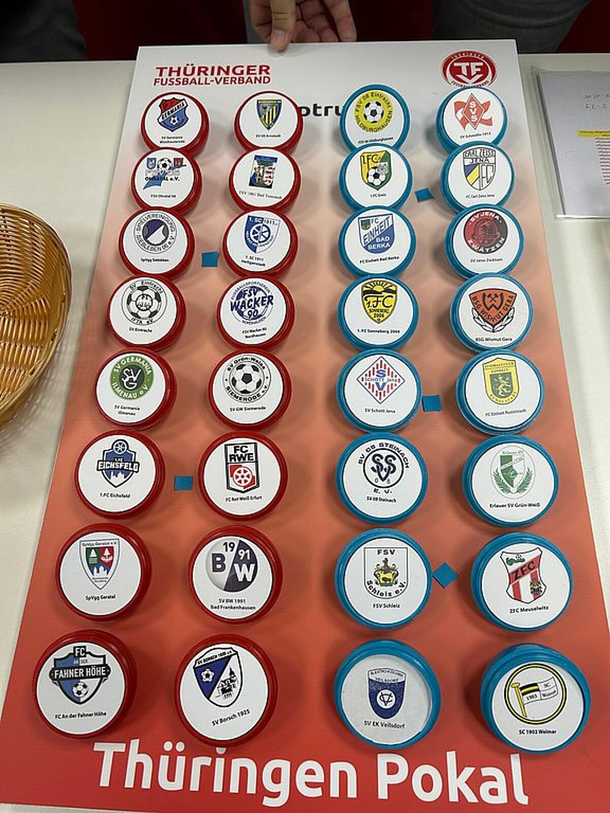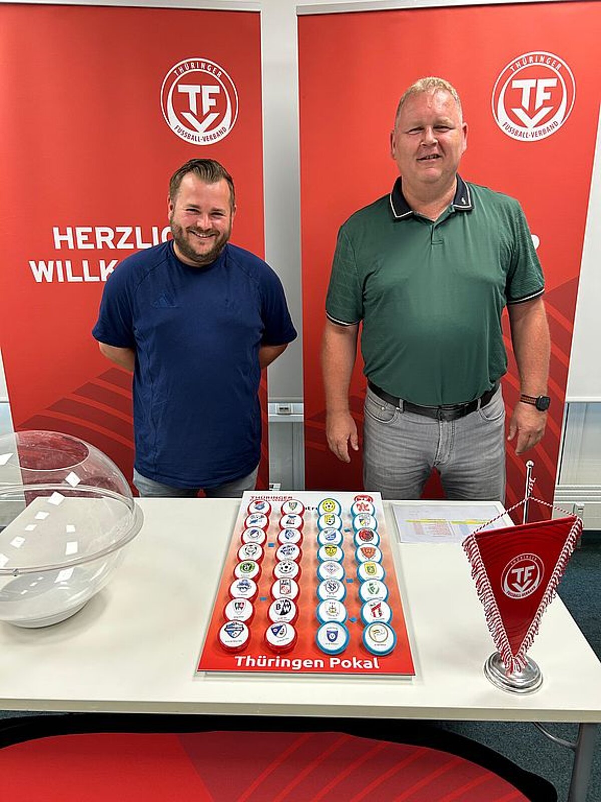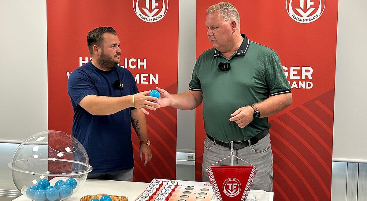 Am Montag (18. August) wurde in der Geschäftsstelle des Thüringer Fußball-Verbandes (TFV) in Erfurt die zweite Hauptrunde des Thüringen Pokals ausgelost. An den Loskugeln versuchte René Deubner, Area Manager vom Thüringenliga-Partner 11Teamsports, sein Händchen. Geleitet wurde die Auslosung von Sven Wenzel, dem Vorsitzenden des TFV-Spielausschusses.