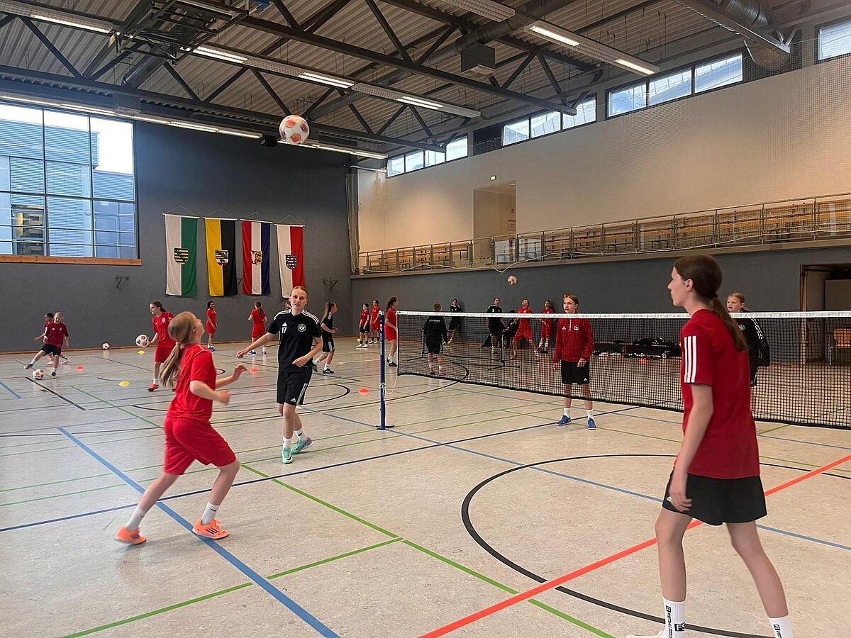 16 Thüringer Spielerinnen aus elf Vereinen trafen sich vom 21.04. - 23.04.2026 zum Lehrgang mit den U14-Landesauswahlteams aus Mecklenburg-Vorpommern und Berlin: Testspiele im Elf-gegen-Elf, Minispielformen im drei-gegen-drei und vier-gegen-vier, ein Fußballtennis-Turnier sowie ein polysportives Freizeitangebot am Mittwochnachmittag. Alle drei Tage waren mit unterschiedlichen Inhalten gut gefüllt. Neben der Entwicklung der Spielerinnen standen dabei Spaß und Freude im Vordergrund.