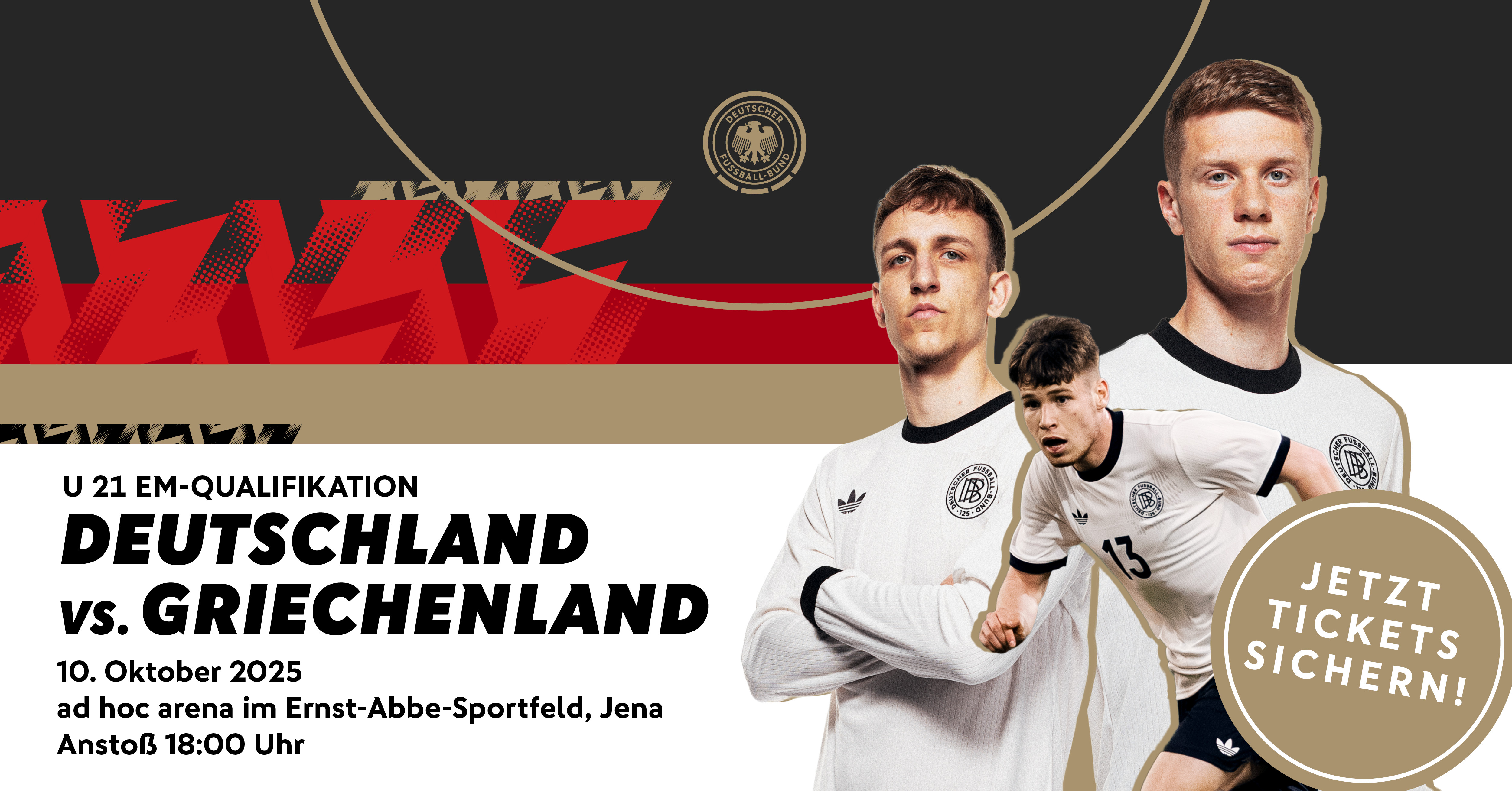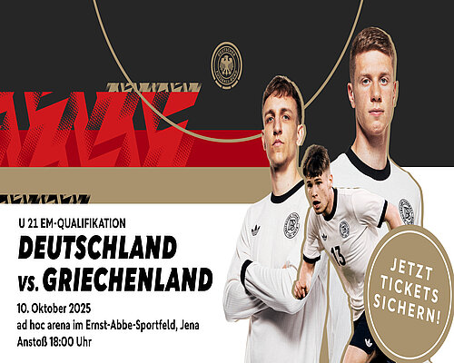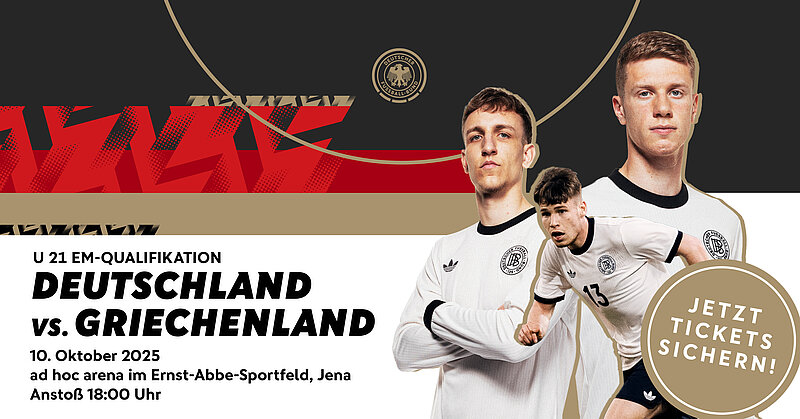 Am Freitag, 10.10.2025 empfängt die deutsche U 21-Nationalmannschaft im Rahmen der Qualifikation zur UEFA U21-Europameisterschaft 2027 im Jenaer Ernst-Abbe-Sportfeld das Team aus Griechenland.