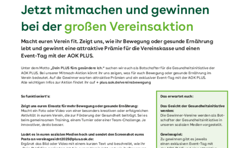 Macht euren Verein fit und zeigt, wie ihr Bewegung oder gesunde Ernährung lebt und gewinnt dabei eine attraktive Prämie für die Vereinskasse und einen…